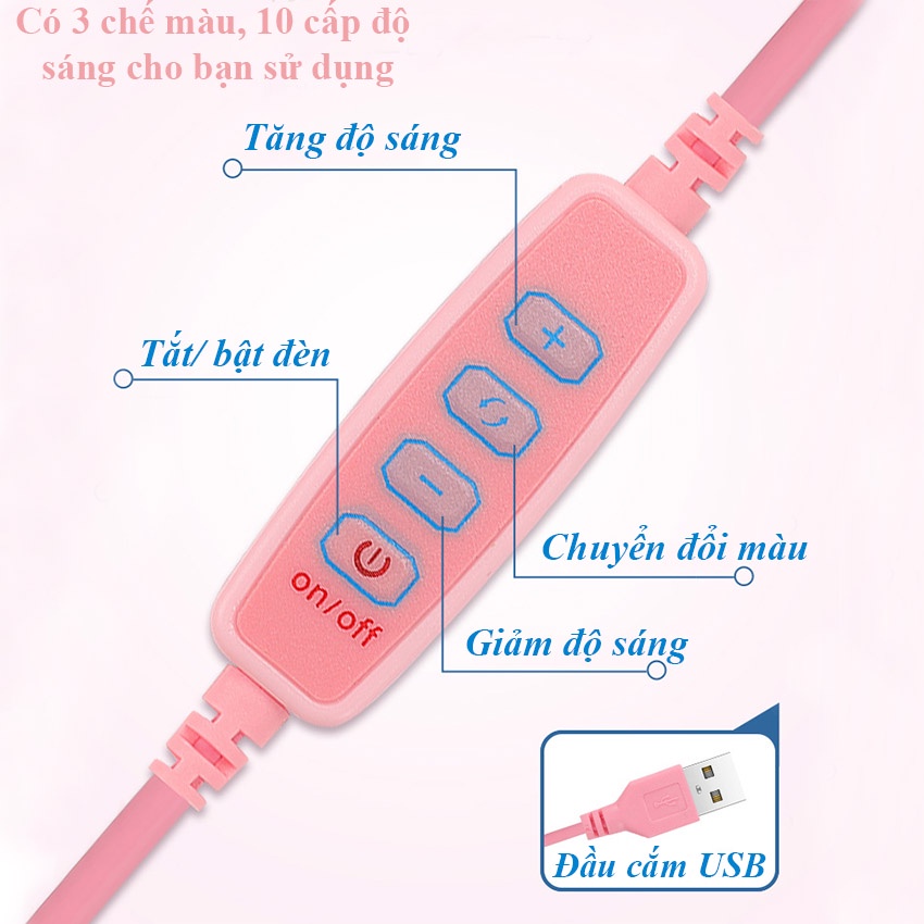 Đèn Led 16cm nhỏ gọn sẽ rất cơ động cho việc di chuyển mang theo bên mình mỗi khi đi xa, với đầu dây sạc USB bạn có thể sử dụng kể cả ngoài trời. Đèn Livestream có ưu điểm nhỏ gọn, nguồn điện thấp sử dụng cổng usb có thể cấp nguồn cho đèn bằng sạc điện thoại hoặc sạc dự phòng khi những nơi không có điện. Đèn livestream để bàn 16cm tích hợp gương trang điểm có thể tăng giảm chiều cao từ 30cm - 58cm (tính cả đèn). Đèn livestream để bàn 16cm kèm giá đỡ 2 kẹp có thể điều chỉnh từ 36cm lên 47cm (tính cả đèn) có thể để trên bàn hoặc mang đi ra ngoài. Đèn LED được thiết kế chuyện dụng để rọi ánh sáng trực tiếp và thẳng góc với người dùng, giúp cho người đứng trước đèn được sáng, rõ, đẹp hơn, - Đèn Livestream với rất nhiều tác dụng như: + Livestream bán hàng: quần áo, mỹ phẩm,.... + Chụp ảnh sản phẩm, chụp ảnh selfie, tiktok... + Quay vlog, quay clip review... + Hỗ trợ makeup trang điểm phun xăm, nối mi, Spa làm đẹp... Shop có đủ các loại kích thước đèn Live Stream: 16cm/ 26cm/ 30cm/ 36cm/ 45cm/ 54cm (có 3 màu). Ngoài ra, có đèn livestream RGB nhiều màu sắc và các hiệu ứng đi kèm kích thước 26cm và 30cm. - Tránh được hiện tượng đổ bóng khi thiếu sáng. Đèn Livestream được thiết kế với chất liệu lớp chống chói dày cao cấp giúp ánh sáng được đều màu và không gây khó chịu cho mặt khi nhìn trực diện lâu. ĐÈN LIVESTREAM CÓ 3 CHẾ ĐỘ MÀU SÁNG: 1 VÀNG - 2 TRẮNG - 3 TRẮNG VÀ VÀNG #denlivestream #dendeban #denled #denled16cm #denbanhang #dencoguong #dentichhopGiá PDA