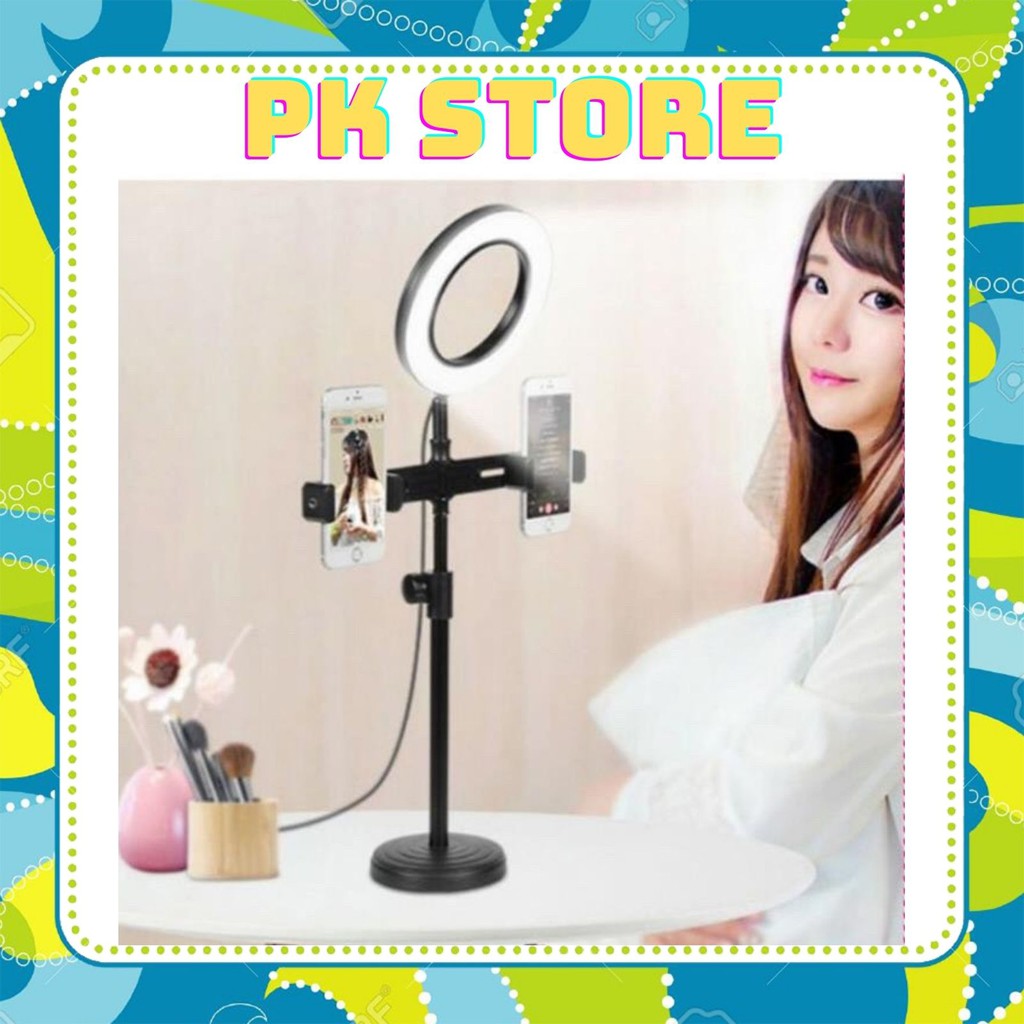Đèn livestream để bàn - Đèn livestream 16cm kẹp 2 điện thoại có đèn hỗ trợ, quay tiktok, bán hàng, make up
