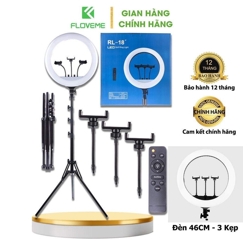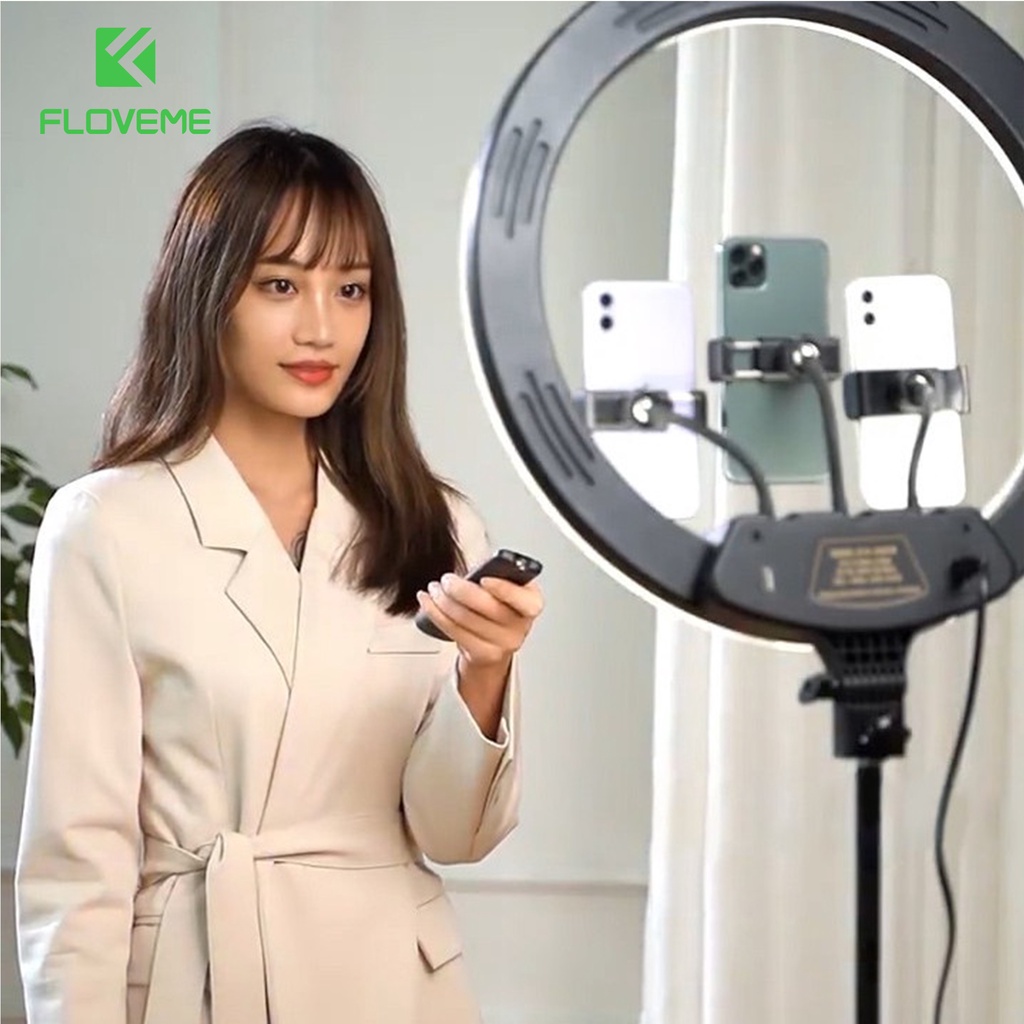 Đèn livestream Floveme cao cấp siêu sáng, chân 2m1, Size đèn 26 36 45 Hỗ Trợ Chụp Ảnh Make up, quay tiktok, bán hàng