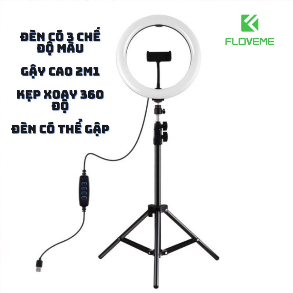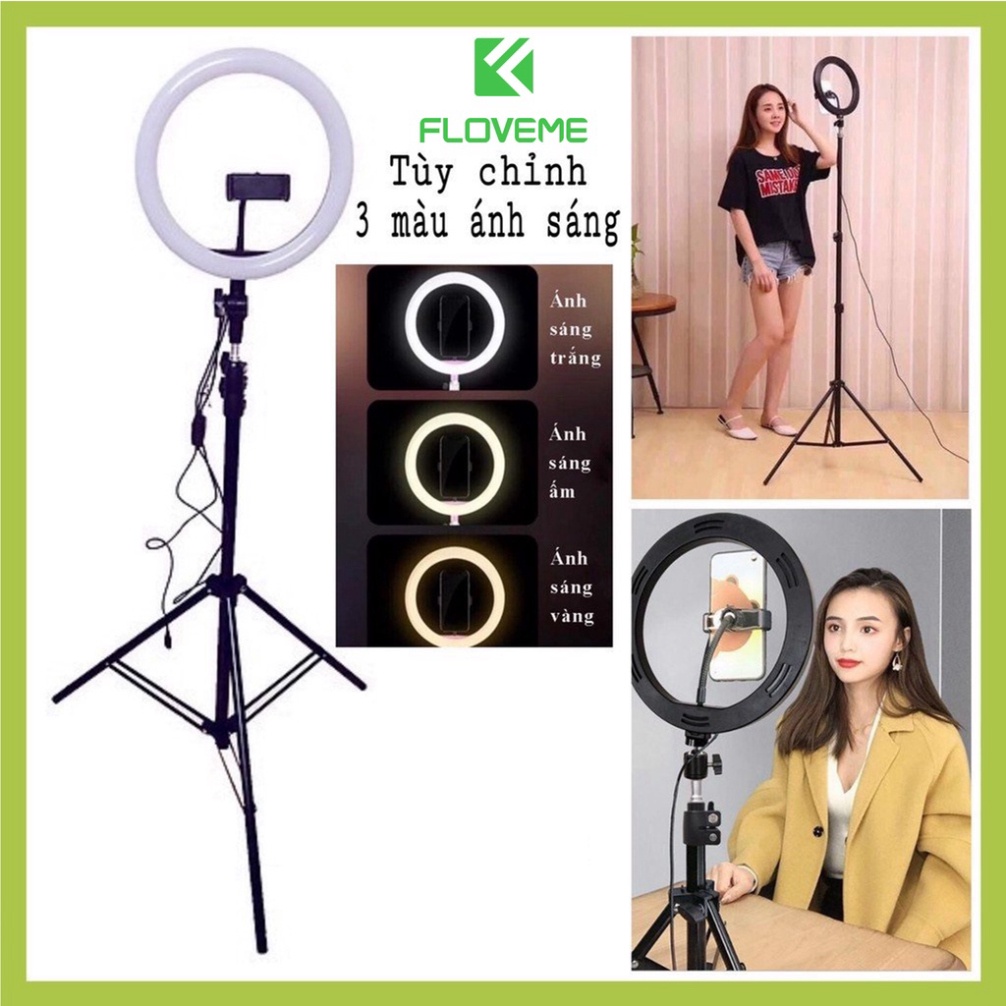 Đèn livestream Floveme cao cấp siêu sáng, chân 2m1, Size đèn 26 36 45 Hỗ Trợ Chụp Ảnh Make up, quay tiktok, bán hàng .