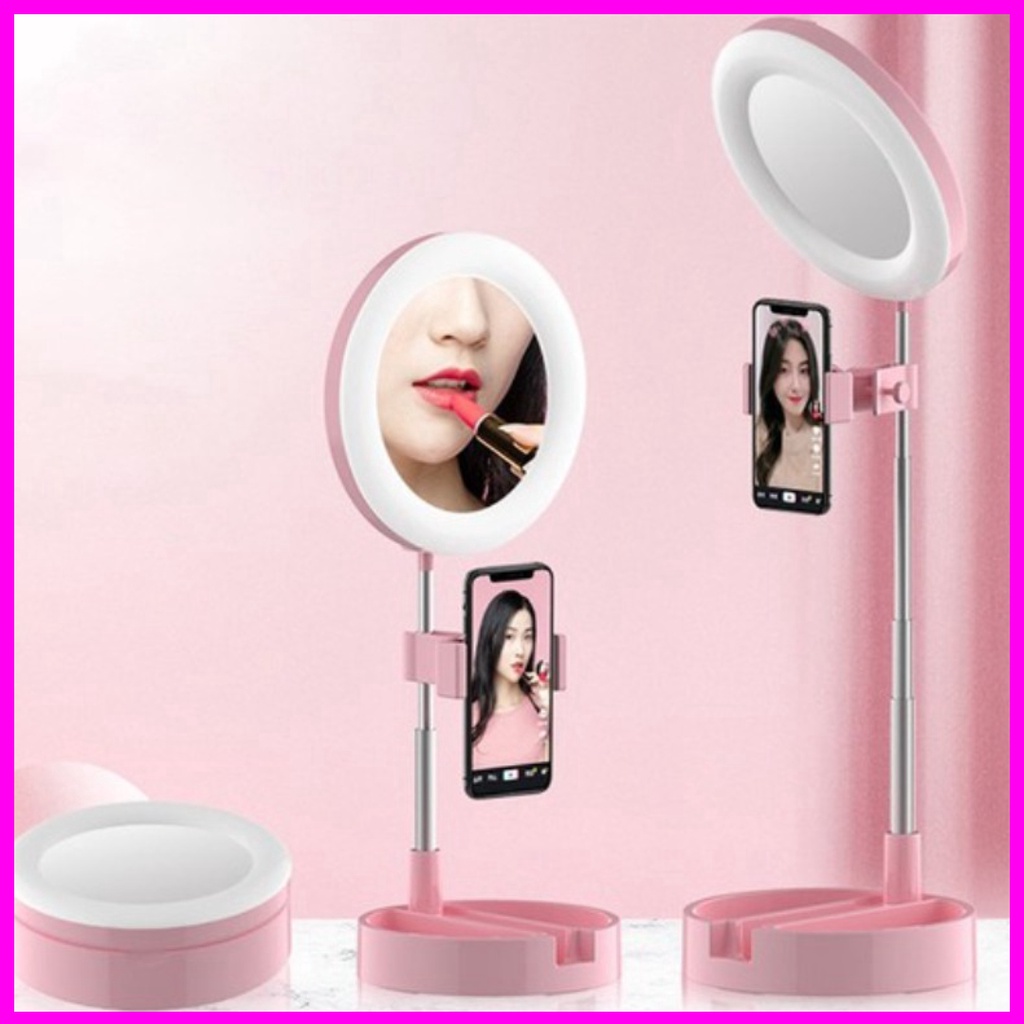 PHUK KIỆN ĐIỆN THOẠI 6686*** Giá Đỡ Điện Thoại ,Gấp Gọn, Có Đèn Led Trợ Sáng, Đèn Chỉnh 3 Màu, Có Gương Trang Điểm ,Tăng Giảm Chiều Cao, Livestream, Tiktok, Bigo, FB P