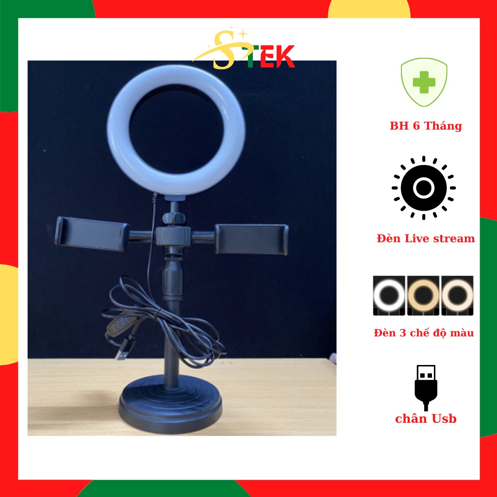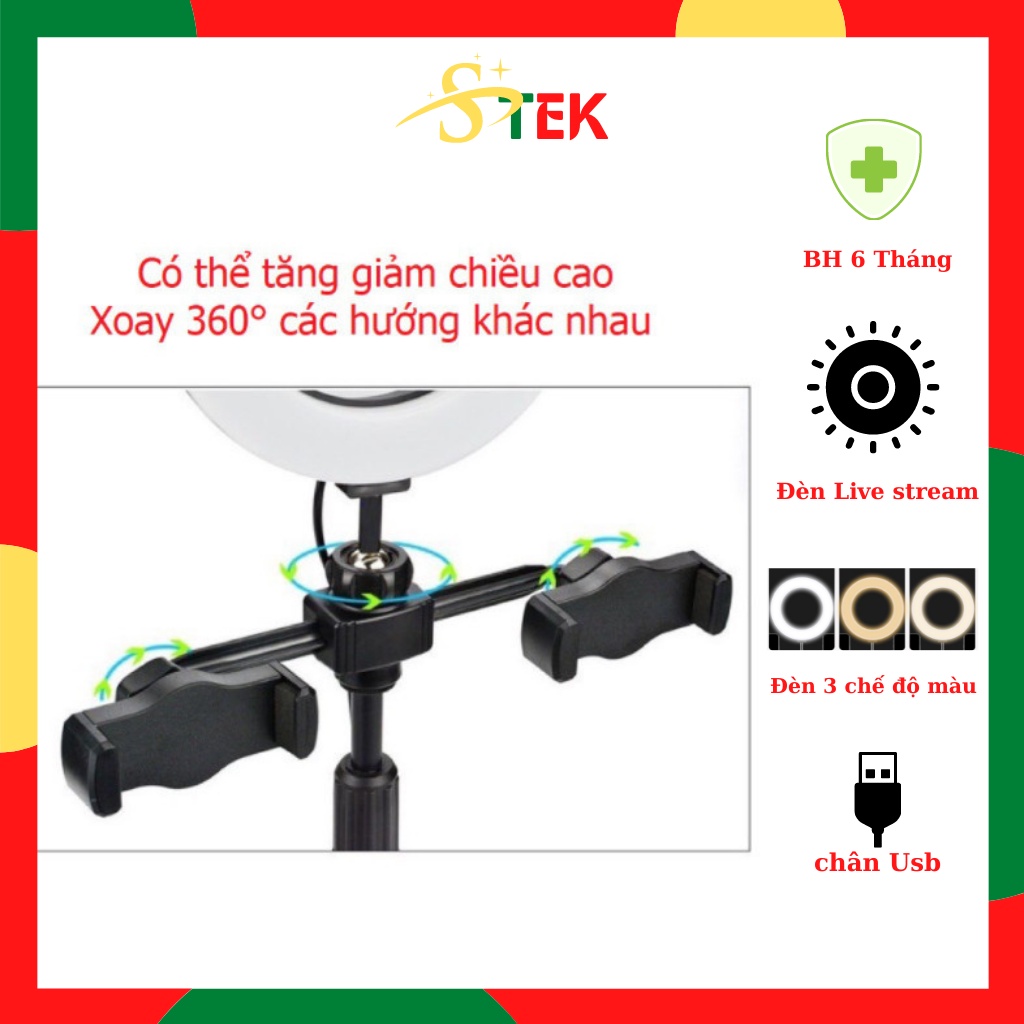 Đèn Livestream Giá Đỡ 2 Kẹp Điện Thoại Chụp ảnh