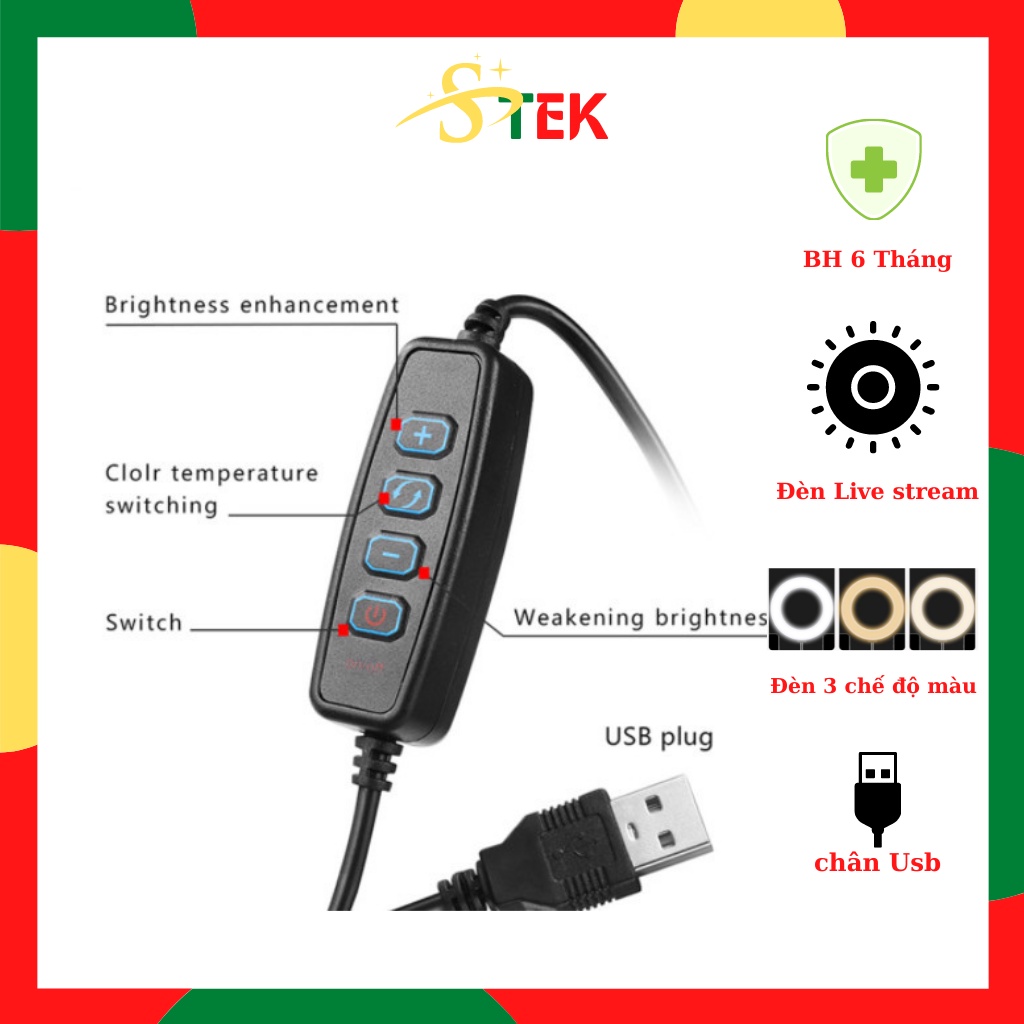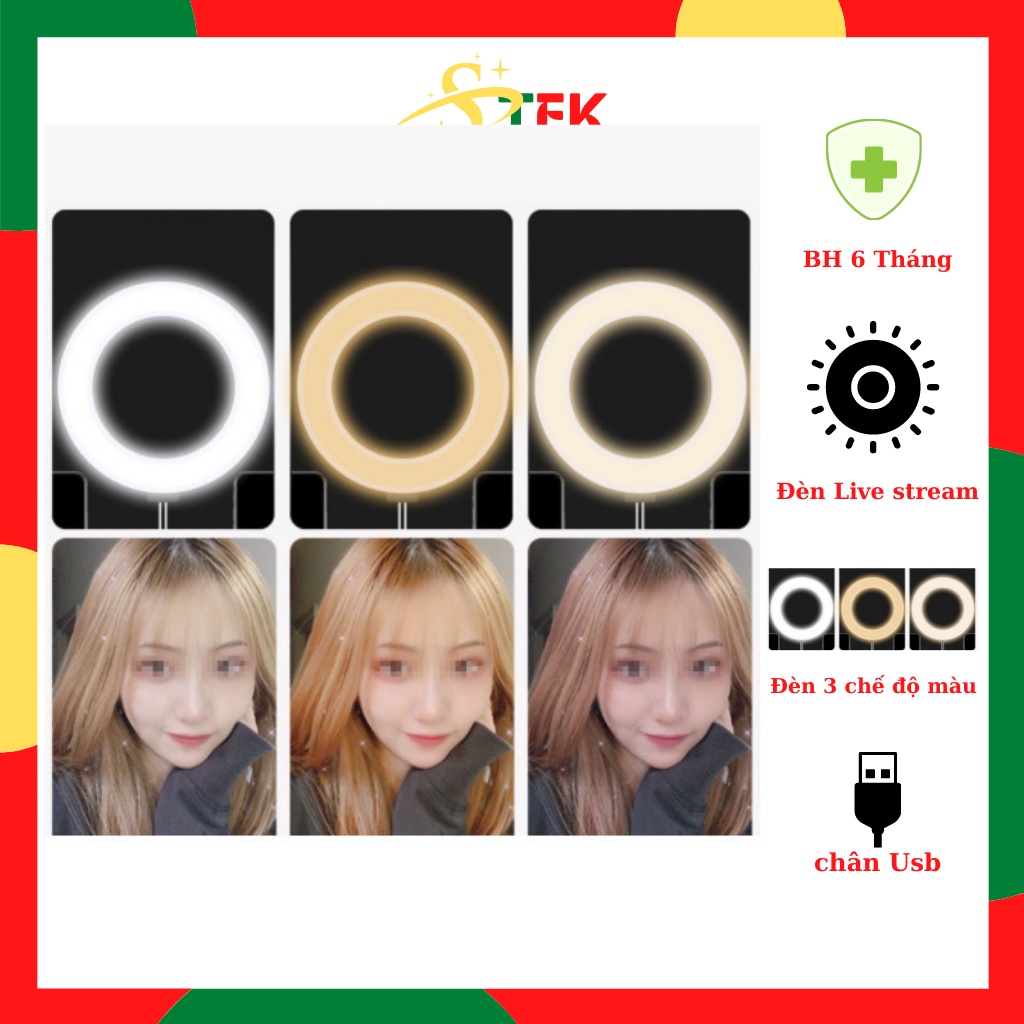 - Có đèn led vòng kích thước đường kính 16cm. Có 3 màu trắng, vàng đậm, vàng nhạt. có thể điều chỉnh độ sáng