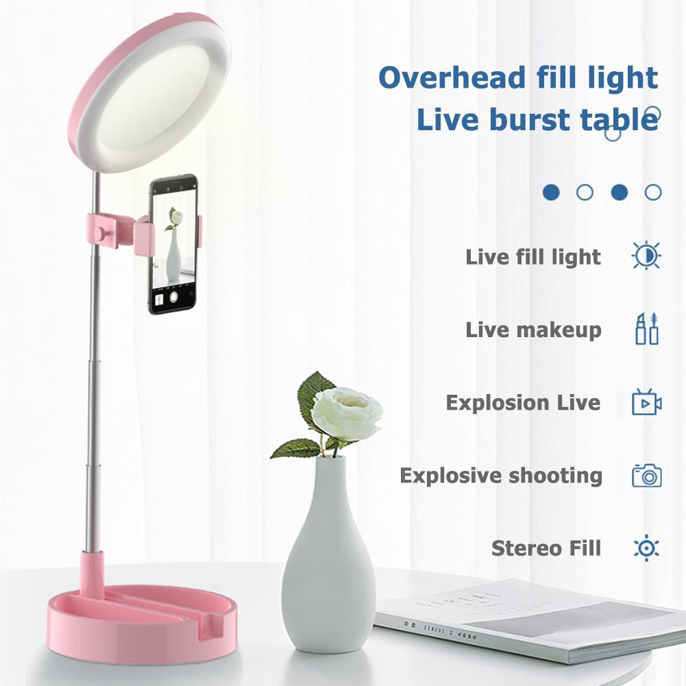 Đèn Livestream gương D1 tích hợp gương trang điểm kèm giá đỡ điện thoại để bàn có thể gấm gọn đa năng