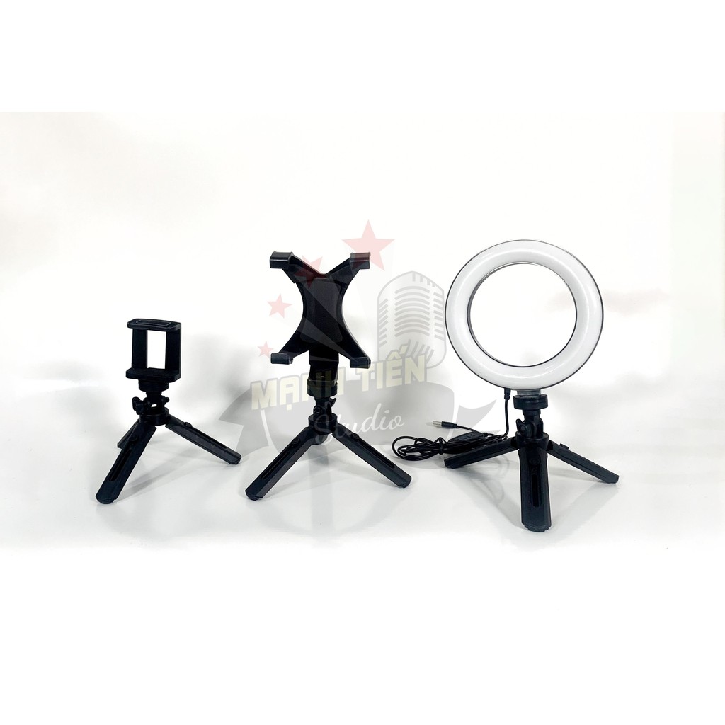 Đèn livestream make up để bàn 16cm 26cm kèm chân Tripod Support MT01 xoay 360 độ chiều cao 21cm đổi 3 màu siêu sáng