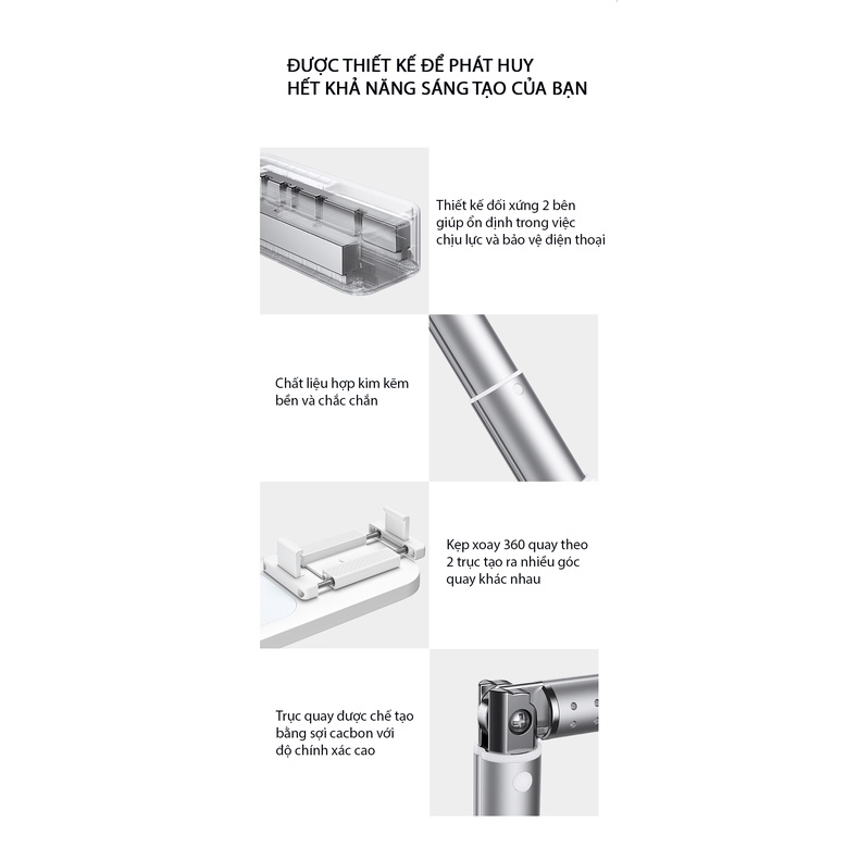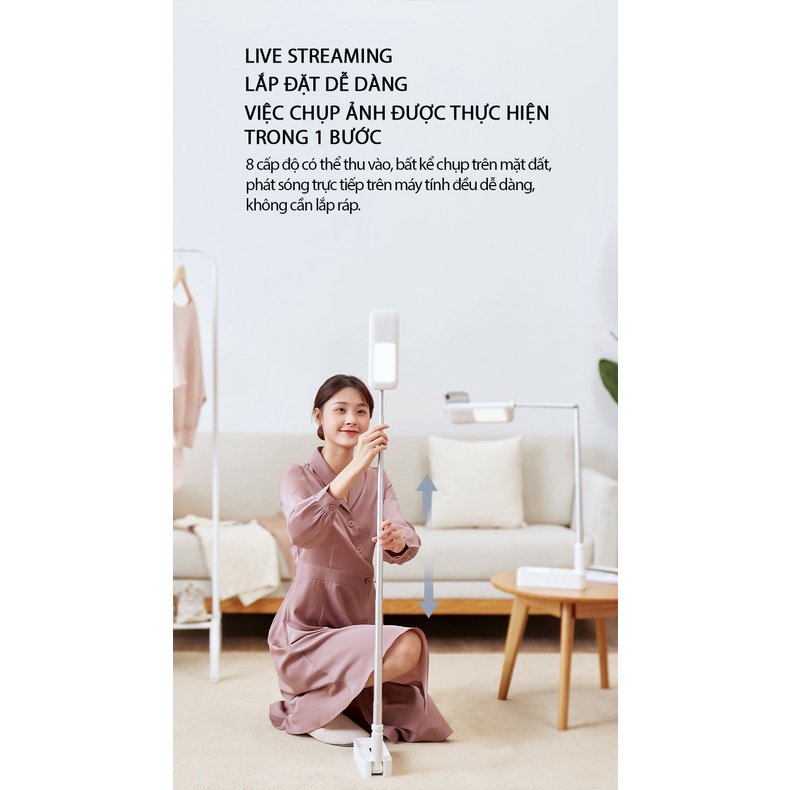 - Thiết kế nhỏ gọn trong 1 chiếc hộp với 8 cấp độ có thể thu vào, bất kể chụp ảnh hay livetream trực tiếp trên máy tính đều dễ dàng, không cần lắp ráp.