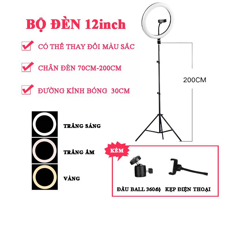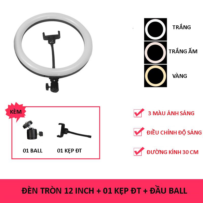 - Bộ đèn Livestream Led Ring 30 cm Cao Cấp (12 inch). Đèn Make Up, Phun Xăm Đèn Livestream.