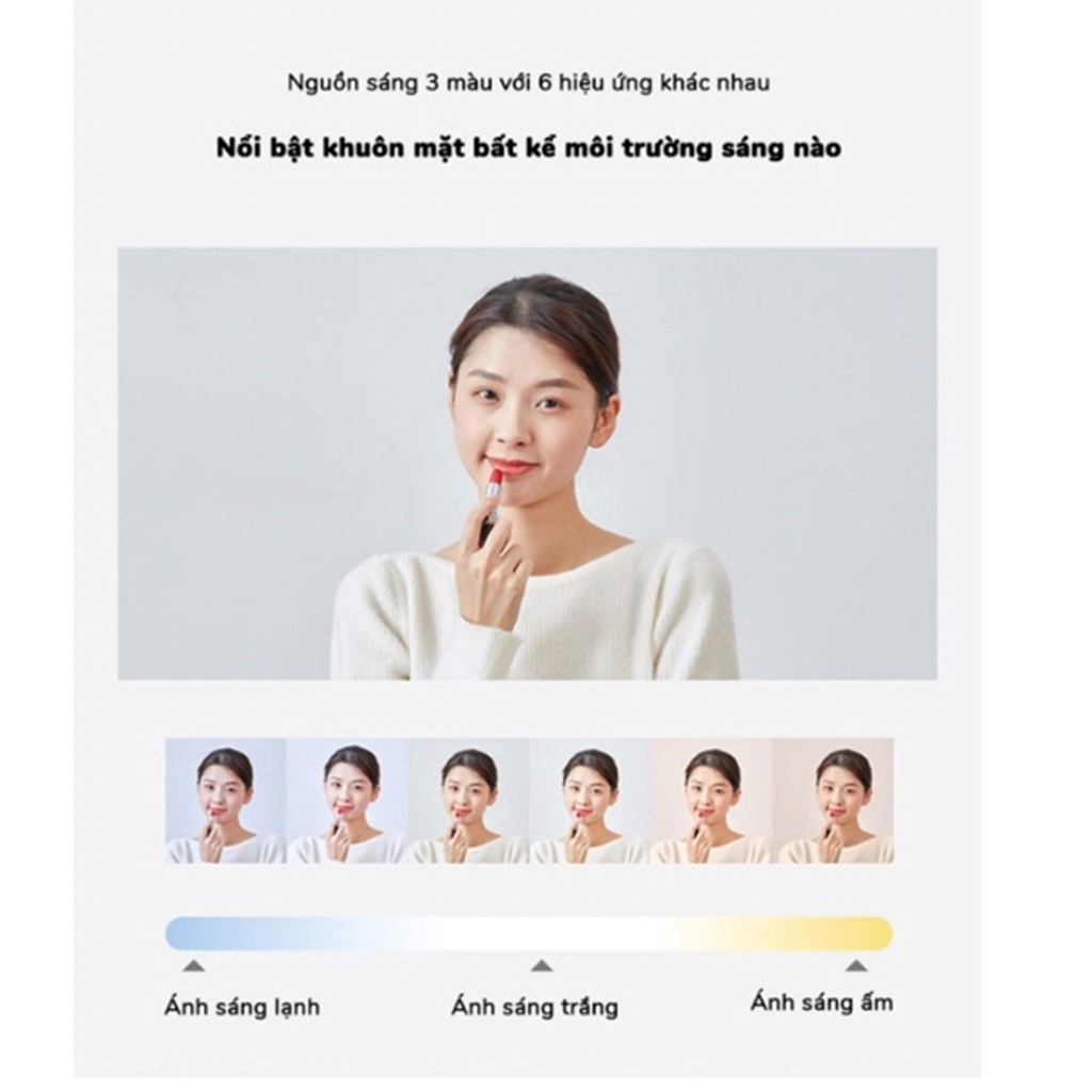 Đèn được thiết kệ nhỏ gọn gập xoay 360 độ, có thể mở ra gập vào dễ dàng, sử dụng pin sạc tiện lợi hơn so với các đèn thông thường ngoài thị trường đều phải sử dụng dây cắmKết nối Bluetooth để chụp ảnh selfie điều chỉnh độ sáng với 7 mức độ ánh sáng khác nhau