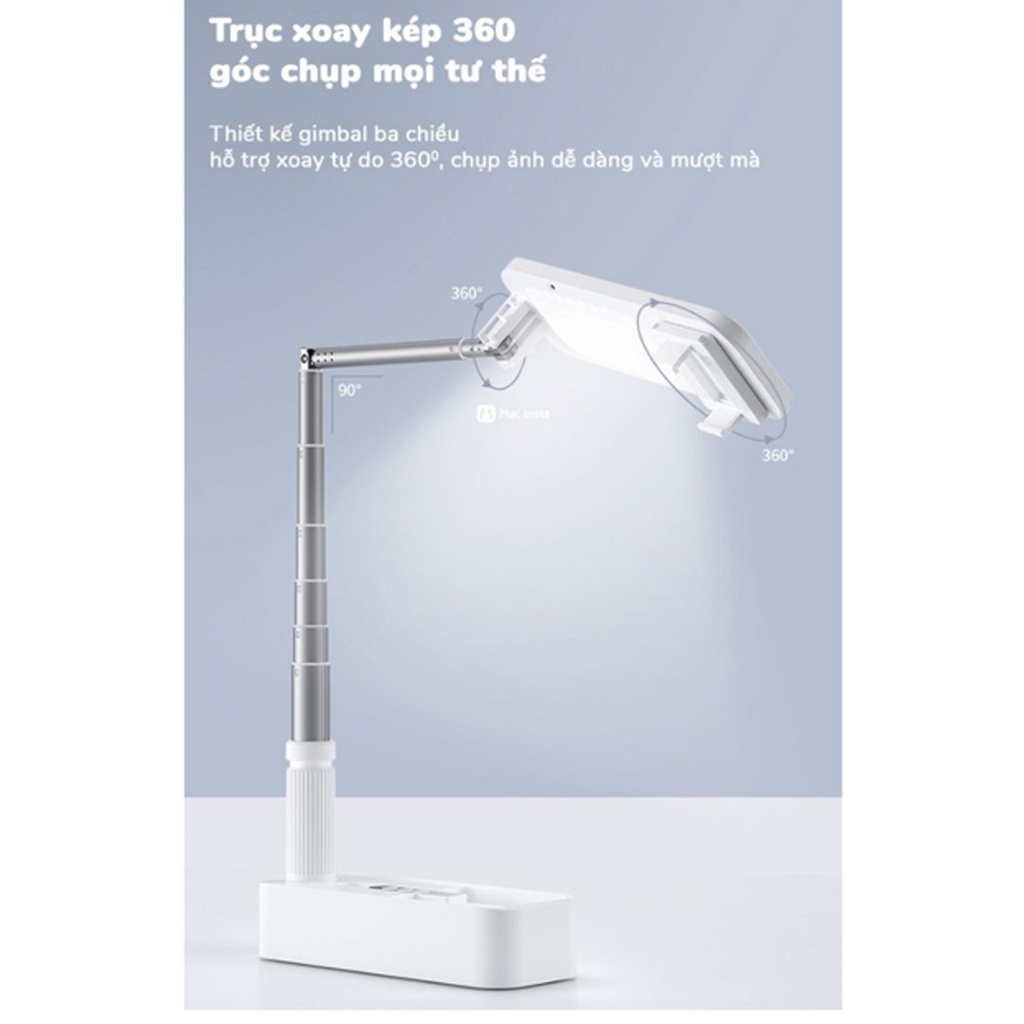 - Đèn có nhiều gấp khúc có thể điều chỉnh mọi tư thế mọi góc nhìn thuận tiện cho việc livetream bán hàng, makeup, DIY , nấu ăn,...