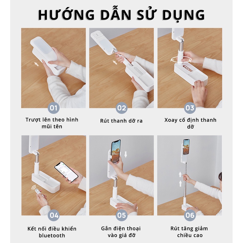 Đèn Livestream Standbox V6 thông minh có đèn LED và đỡ điện thoại thông minh xoay 360, kết nối bluetooth*** Thông số sản phẩm: