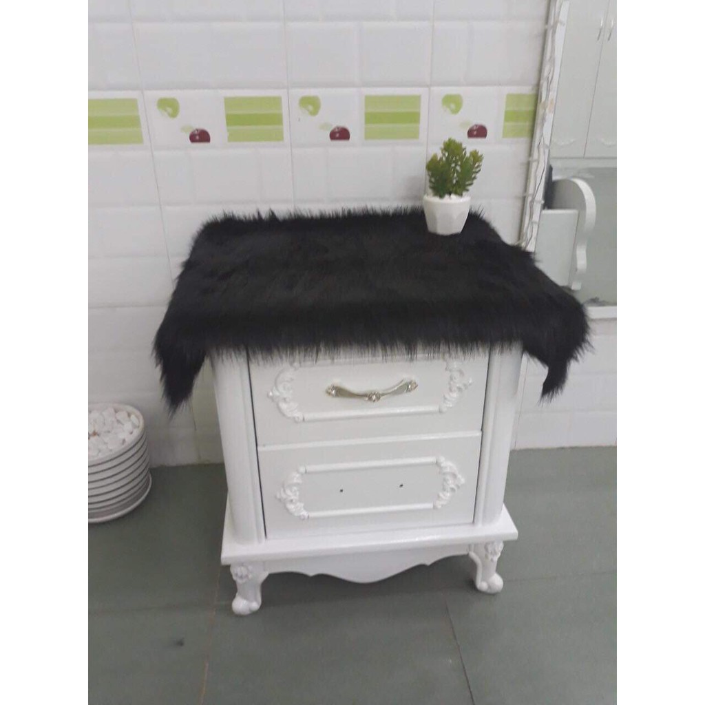 Thảm lông trải bàn trang điểm - Màu Đen Lông Dài - chụp hình sản phẩm.