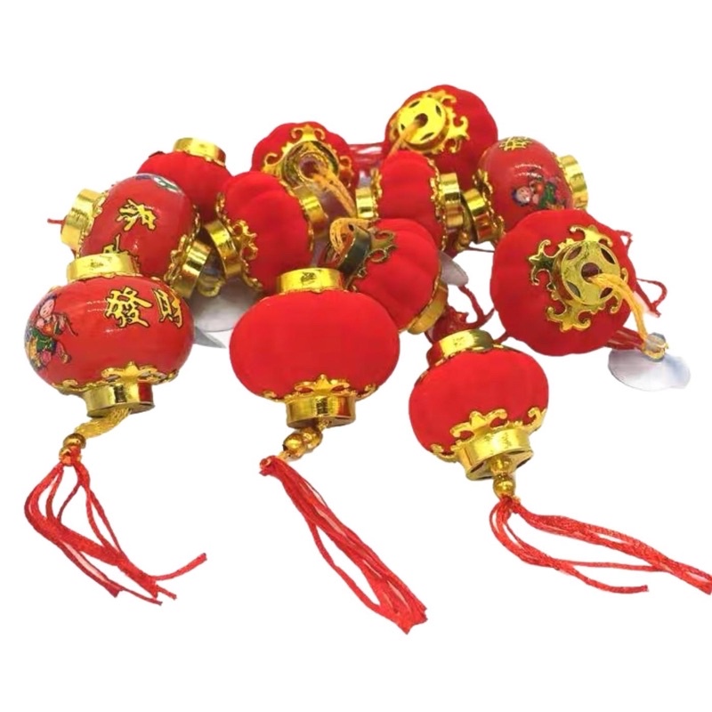 Đèn lồng trang trí cây cảnh có 5 loại 2 màu nhung đỏ và bóng chữ1. Gói 30 đèn KT 3*3cm