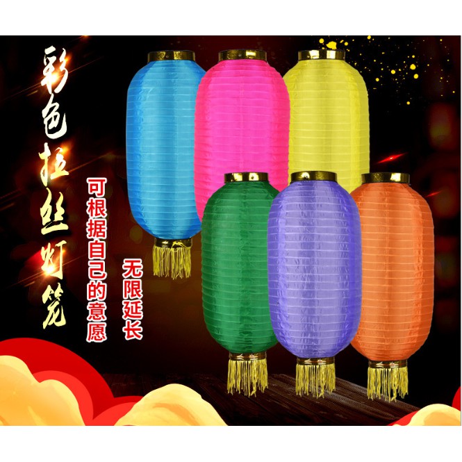 Giới thiệu Đèn lồng vải trụ nhiều màu sắc chống nước trang trí ngoài trời có tua tặng đuôi vàng hạt ngọc