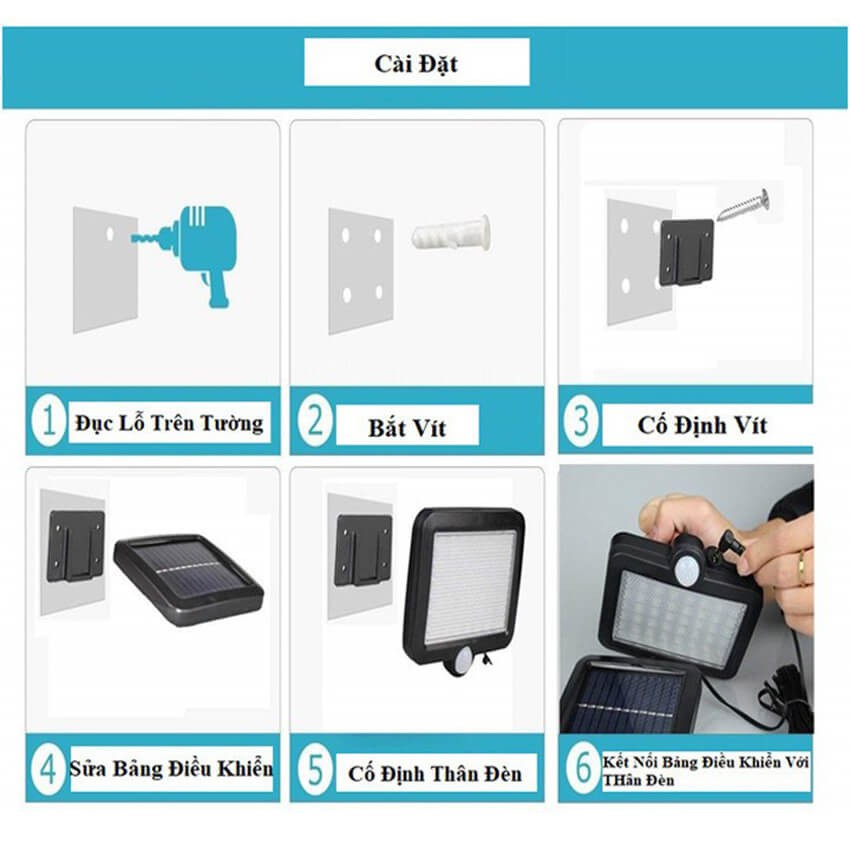 -Đèn năng lượng mặt trời 120 Led COB siêu sáng cảm biến hồng ngoại, kèm 5m dây tiện dụng