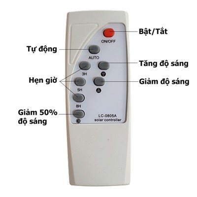 -Bao gồm: Đèn, tấm Pin năng lượng gắn rời, kèm dây, remote chỉnh chế độ sáng