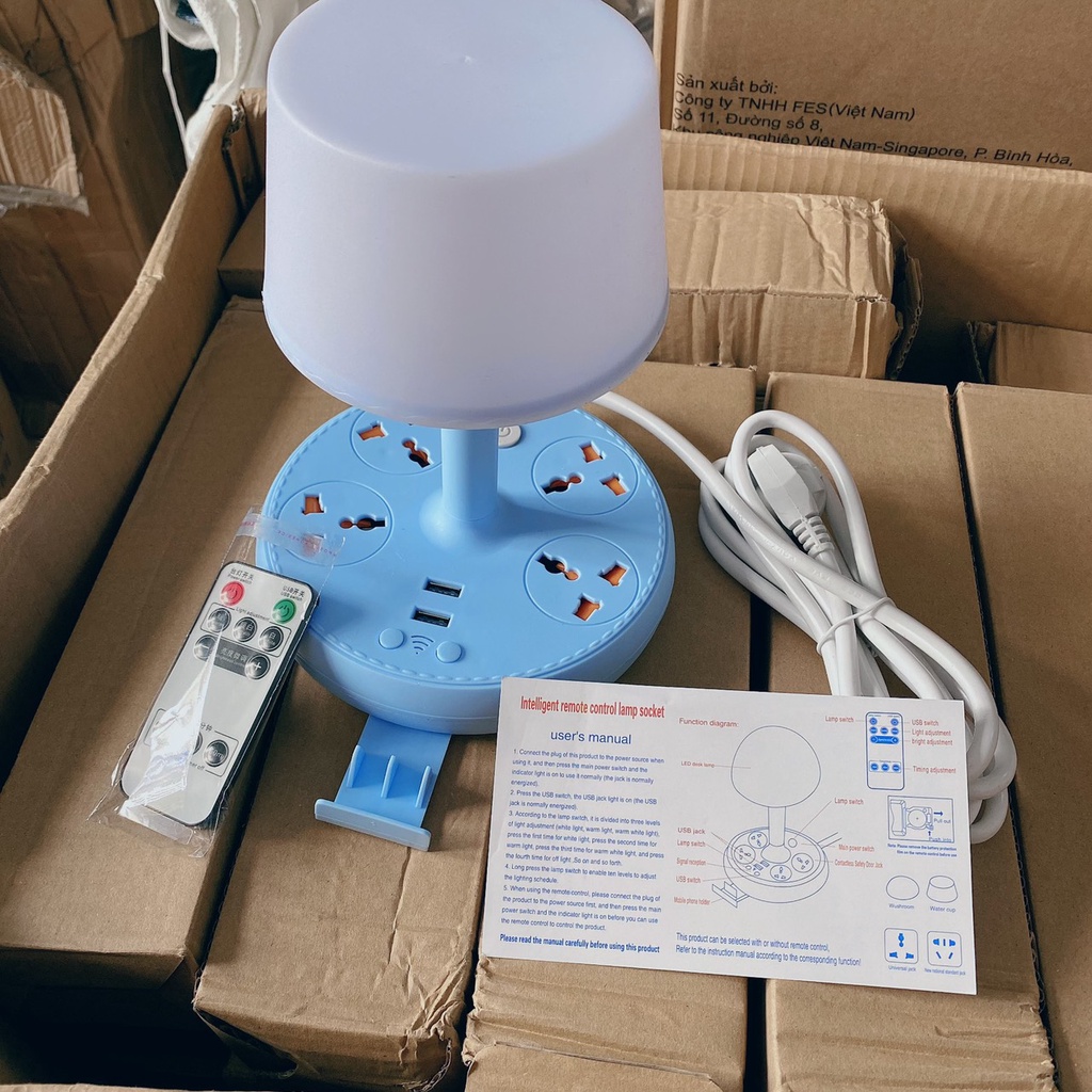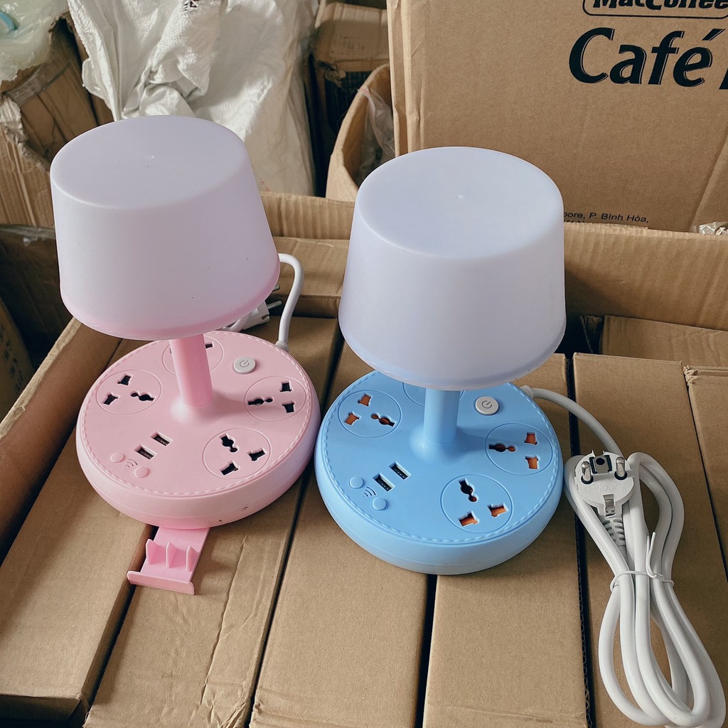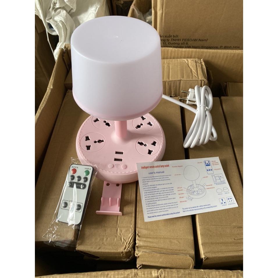 Đèn Ngủ 3 Chế Đọ Để Bàn Kiêm Ổ Điện, Cổng Sạc Điện Thoại-Có Kèm Điều Khiển