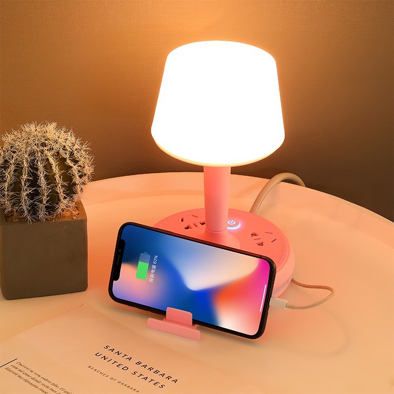 Đèn Ngủ 3 Chế Đọ Để Bàn Kiêm Ổ Điện, Cổng Sạc Điện Thoại-Có Kèm Điều Khiển