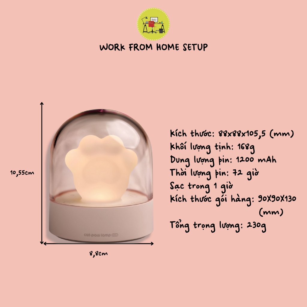 🔥 Đèn Ngủ Chân Mèo - Hộp Phát Nhạc Di Động Sạc USB Hồng - Xám 🔥Chào mừng các bạn đến với sản phẩm của Work From Home Setup tại Shopee.