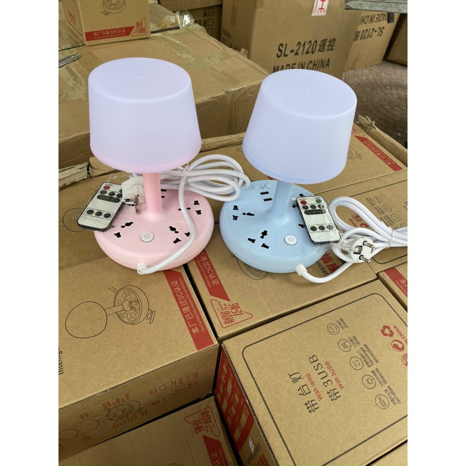 Đèn Ngủ Để Bàn Có Điều Khiển Kèm 4 Ổ Cắm 2 Chạc, 3 Chạc, Cổng Sạc Điện Thoại