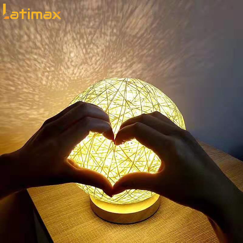 Giới thiệu Đèn Ngủ - Đèn ngủ để bàn, đèn trang trí phòng ngủ Quả Cầu Mây Đế Gỗ Tròn Cao cấp - Điều chỉnh được độ Sáng