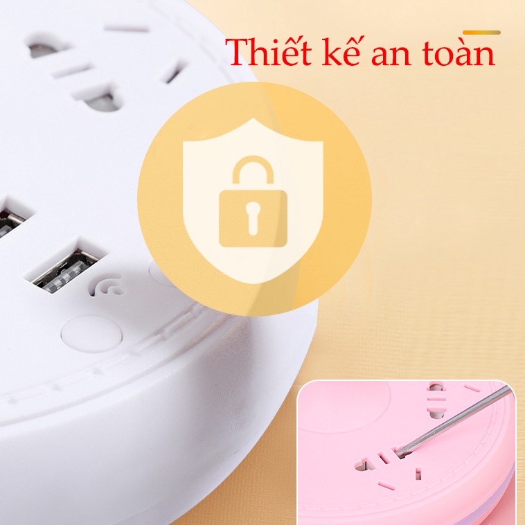 - Chân đèn thiết kế như 1 ổ điện đa năng gồm 4 rắc cắm điện và 2 đầu cắm USB ( sạc điện thoại siêu nhanh) . Các ổ cắm có màng chống giật an toàn cho trẻ nhỏ