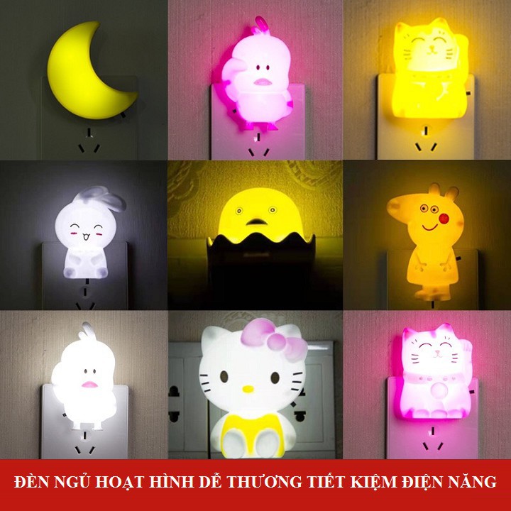 Lưu ý: Riêng mẫu đèn ngủ hình gà con là đèn cảm biến ánh sáng tự động bật tắt thông minh, các mẫu đèn còn lại là có công tắc bật bên cạnh.