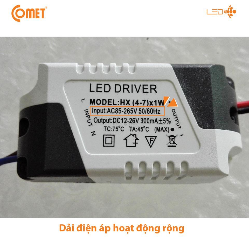 Đèn LED có dải điện áp rộng (85 – 265VAC), ánh sáng và công suất không thay đổi khi điện áp lưới thay đổi.