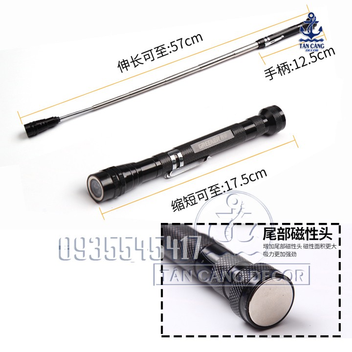 - Được tích hợp nam châm chuyên dụng với từ tính cao, giúp cố định đèn pin trên vật liệu sắt.