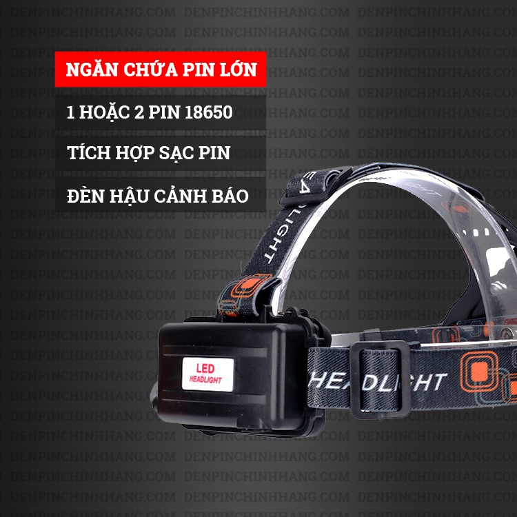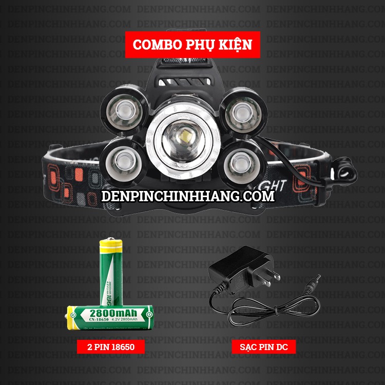 Đèn pin đội đầu 5 bóng 30W phiên bản mới - Có Zoom xa gần