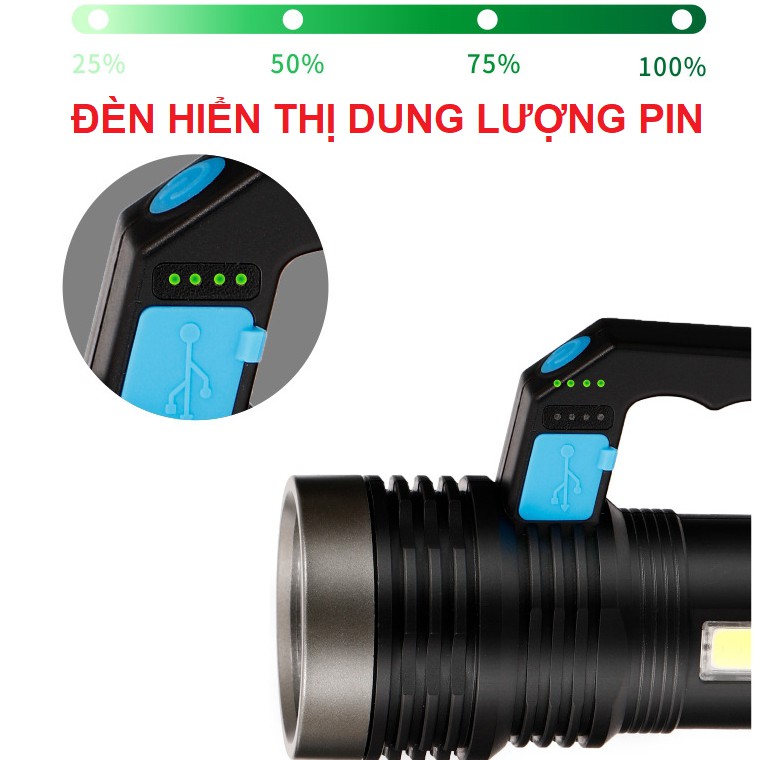 - Trên đèn pin có đèn báo vạch phần trăm pin