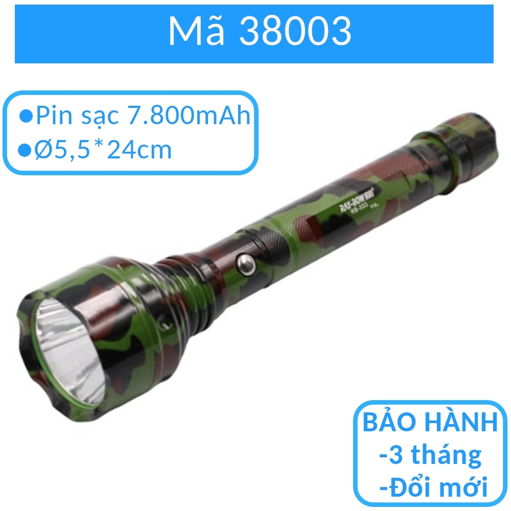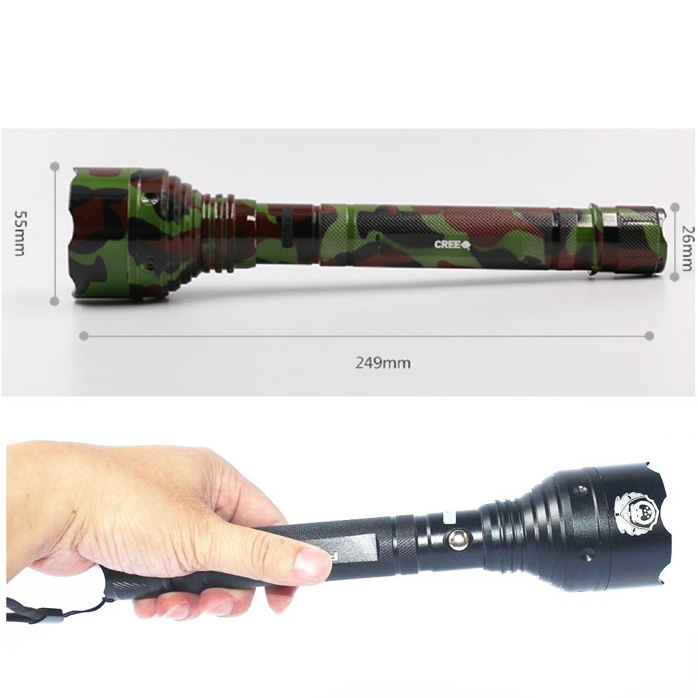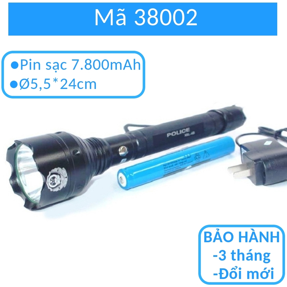 -Khoảng cách chiếu xa: Đèn pin (500m). Độ sáng: 500 Lumen.