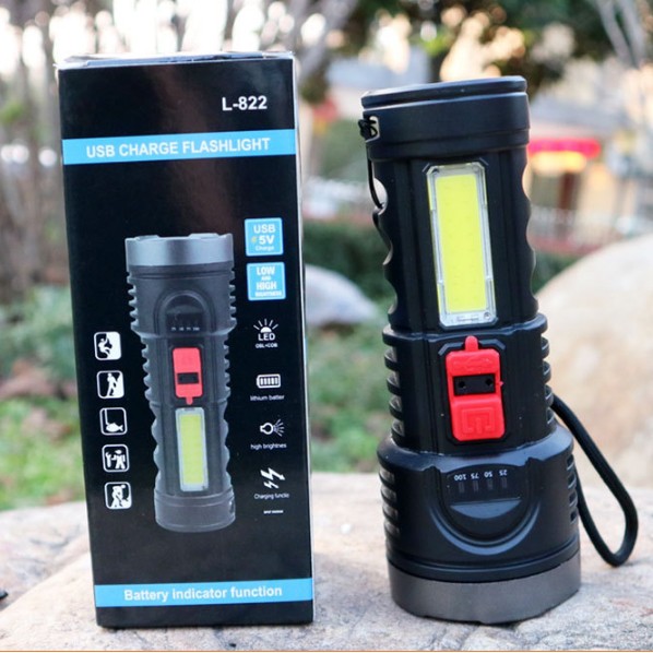 Đèn pin siêu sáng L-822,Tích hợp LED bên hông,cổng USB sạc điện thoại hàng tốt