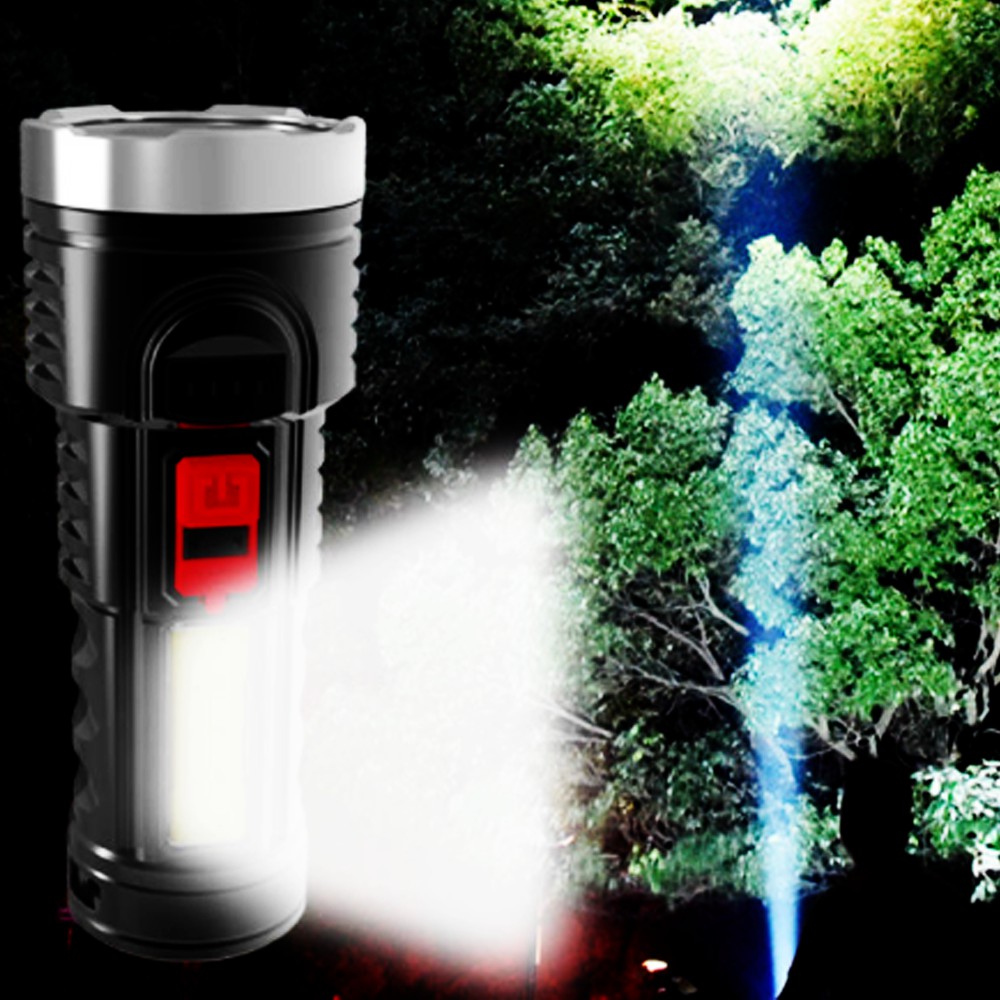 Đèn pin siêu sáng , XPE và COB , chất liệu nhưa ABS, có chớp , có pha dung lượng pin 1200mah, sạc điện cổng USB 5 v.
