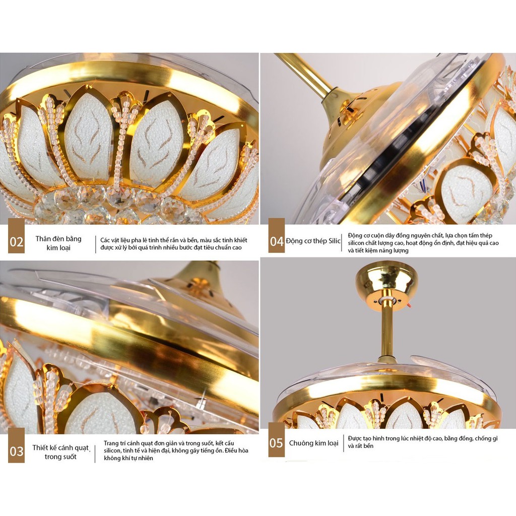 Vật liệu nhẹ kim loại mạ vàng 24k, cánh quạt làm bằng nhựa ABS độ bền cao
