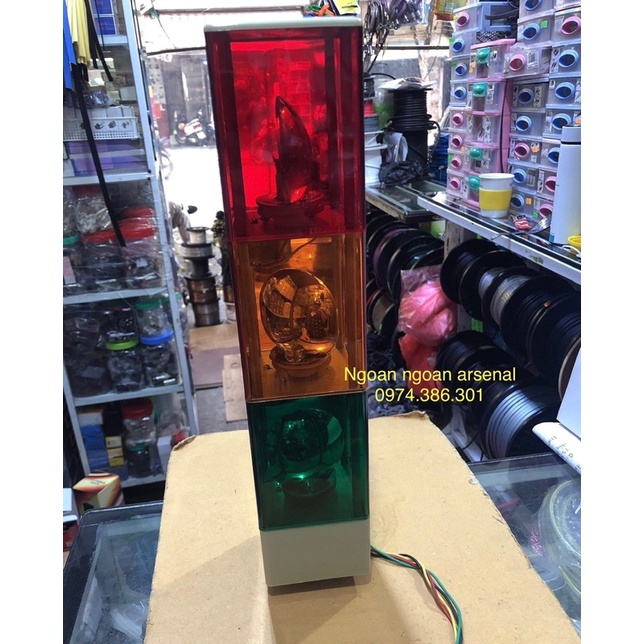 Đèn quay 3 tầng, đèn quay 3 màu, đèn tháp điện 12V, 24V, 220V. Báo giá 1 cái