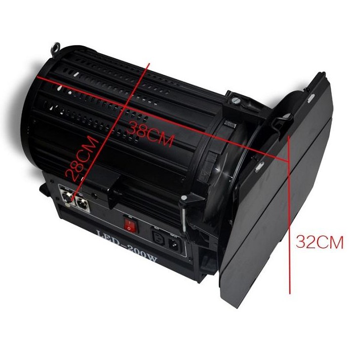 Đèn quay phim Spotlight LED 200W DMX 512 hiện đại và chuyên nghiệp đang thay thế cho dòng đèn spotlight sợi đốt thông thường. Đèn spotlight Led 200w DMX512 có nhiệt màu 3200K – 5600K thuận tiện cho việc quay phim chụp ảnh, công suất led 200w mạnh mẽ tương đương dòng halogen 1000w-1500w.THÔNG SỐ KỸ THUẬT: