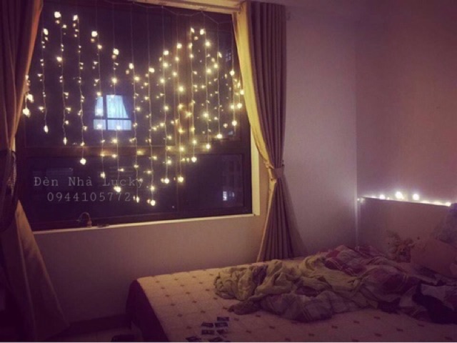 - Bộ đèn rèm bung ra treo 2 đầu lên.