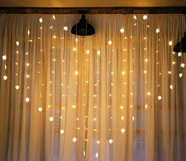Đèn rèm hình trái tim màu vàng ấm xinh lung linh ✨