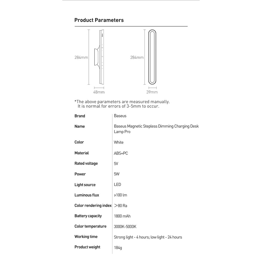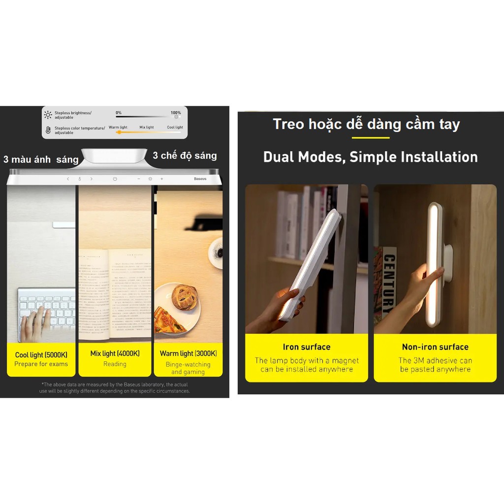 Điện Thoại & Phụ Kiện > Phụ kiện > Đèn USB & Đèn điện thoại || Đèn sạc cầm tay/ hoặc treo bằng lực hít nam châm Baseus Magnetic stepless dimming DGXC-02 (Bản Pro)Còn hàng