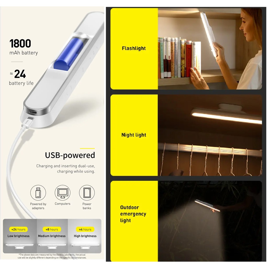 Đèn sạc sử dụng cầm tay hoặc treo tường với đế nam châm thương thiệu Baseus, Model: DGXC-02 (Bản Pro)- 3 chế độ sáng và 3 màu ánh sáng mặc định