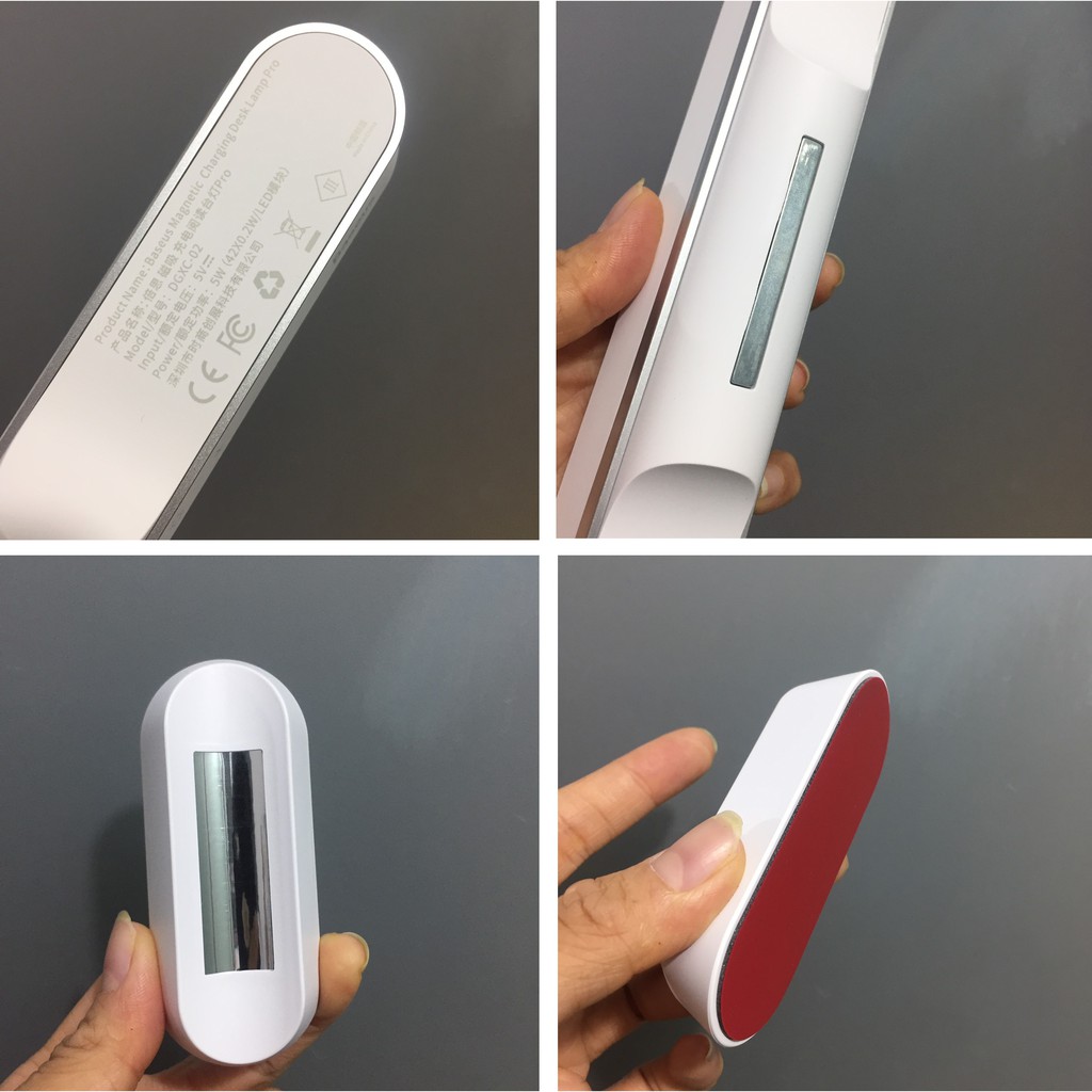 -Đế dán trực tiếp vào mặt phẳng và giữ đèn nhờ lực hút nam châm trên thân đèn
