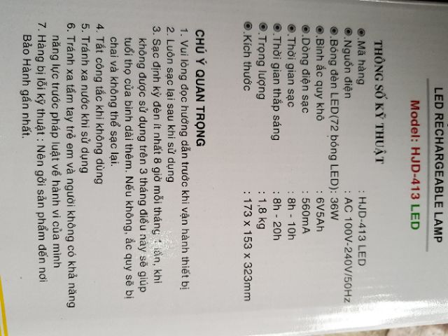 Giới thiệu Đèn sạc led HJD 413
