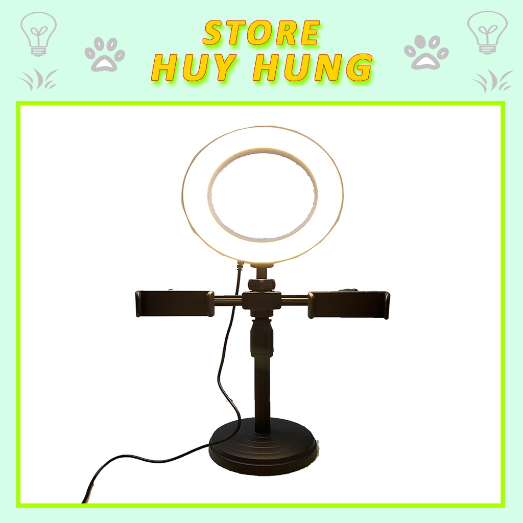 Điện Thoại & Phụ Kiện > Phụ kiện > Phụ kiện selfie > Giá đỡ || Đèn Size 15cm Kẹp 2 Điện Thoại Livestream, Trang Điểm, Chụp HìnhCòn hàng