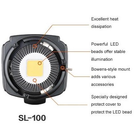 Cameras & Flycam > Phụ kiện máy ảnh > Thiết bị ánh sáng và phòng chụp || Đèn Studio Godox SL 100WCòn hàng