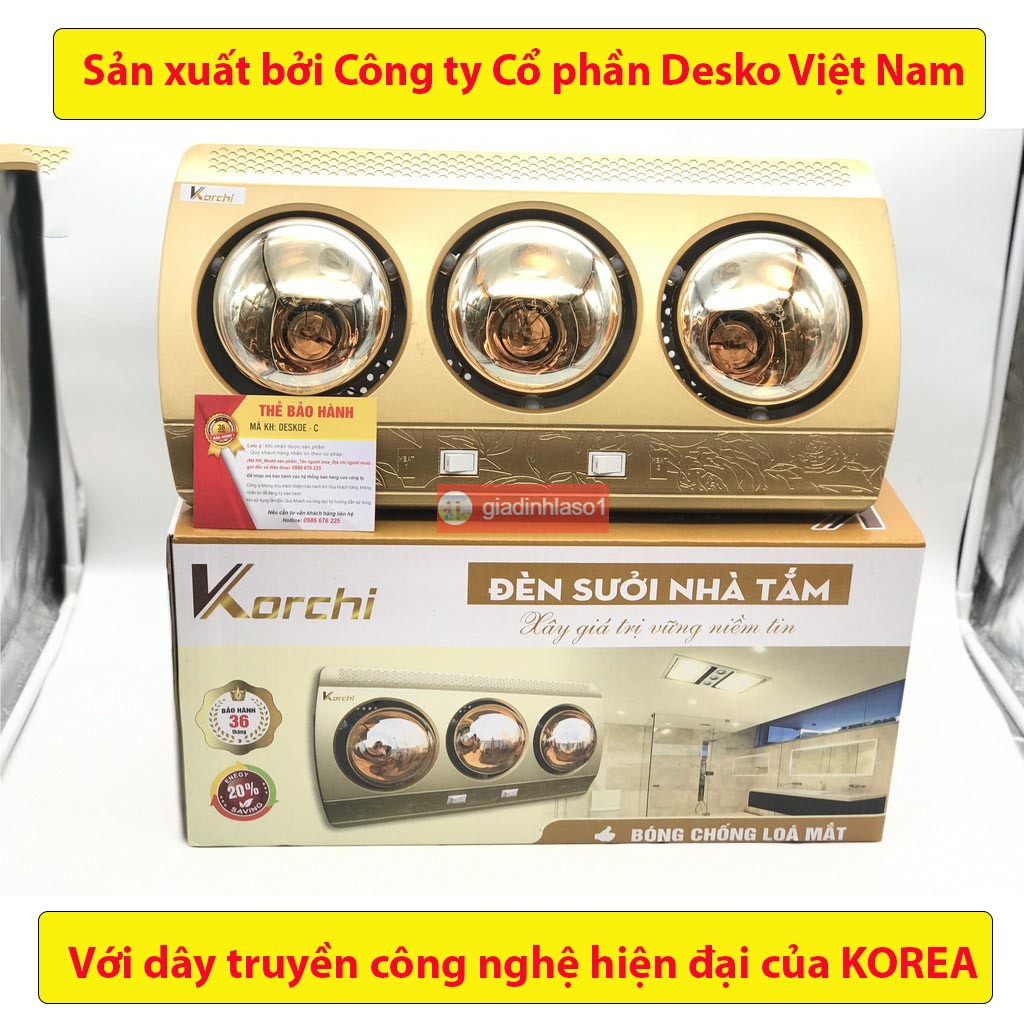 - Đèn sưởi nhà tắm Korchi được sản xuất bởi Công ty Cổ phần Desko Việt Nam với dây truyền công nghệ hiện đại của KOREA