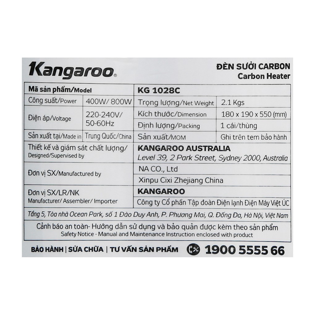 Thiết Bị Điện Gia Dụng > Thiết bị điện gia dụng lớn > Máy sưởi || [Mã ELHA22 giảm 5% đơn 300K] [Mã ELHAFEB giảm 5% đơn 300K] Đèn sưởi carbon Kangaroo KG1028C chính hãngCòn hàng