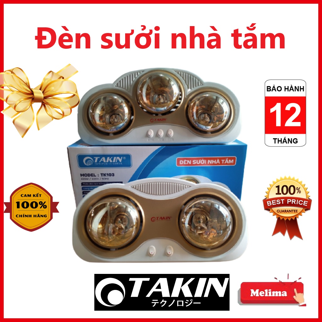 Thiết Bị Điện Gia Dụng > Thiết bị điện gia dụng lớn > Máy sưởi || Đèn Sưởi, Đèn sưởi nhà tắm Takin 02 bóng và 03 bóng mã TK102 và TK103, Mạ chống lóa, Công tắc tách riêng biệt, MelimaCòn hàng