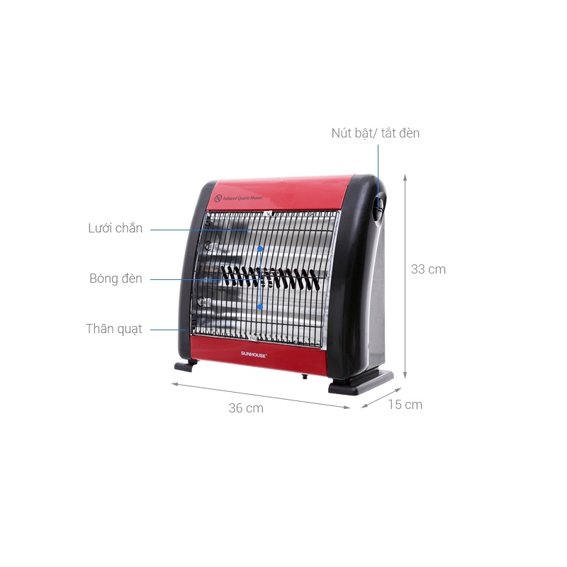 Đèn sưởi điện hồng ngoại Sunhouse 2 bóng - Bảo hành 12 tháng - quạtsưởiấm
