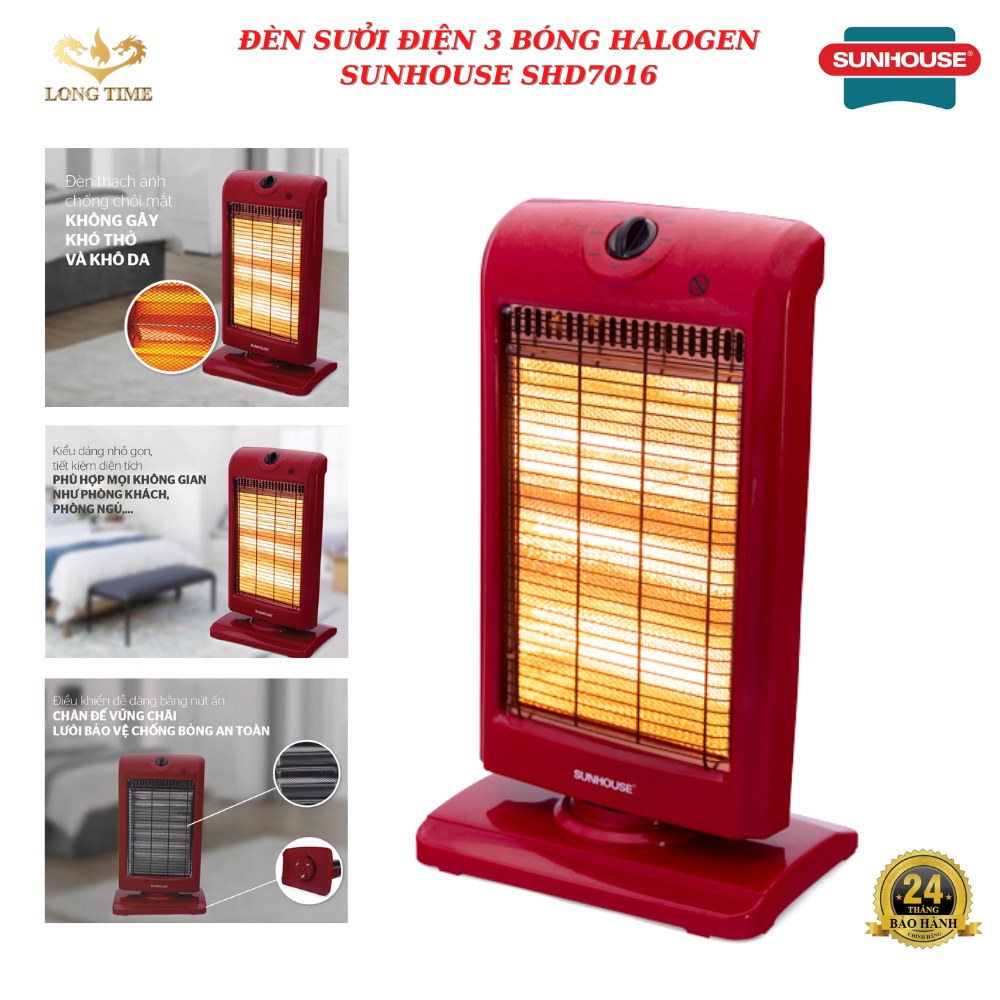 Đèn sưởi điện Sunhouse , máy sưởi ấm SHD7016 , 3 bóng halogen , làm ấm siêu nhanh , xoay đảo chiều , an toàn , bền bỉ