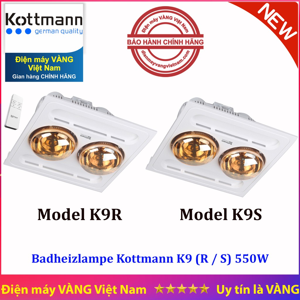 Thiết Bị Điện Gia Dụng > Thiết bị điện gia dụng lớn > Máy sưởi || Đèn sưởi nhà tắm 2 bóng âm trần Kottmann K9R và K9SCòn hàng